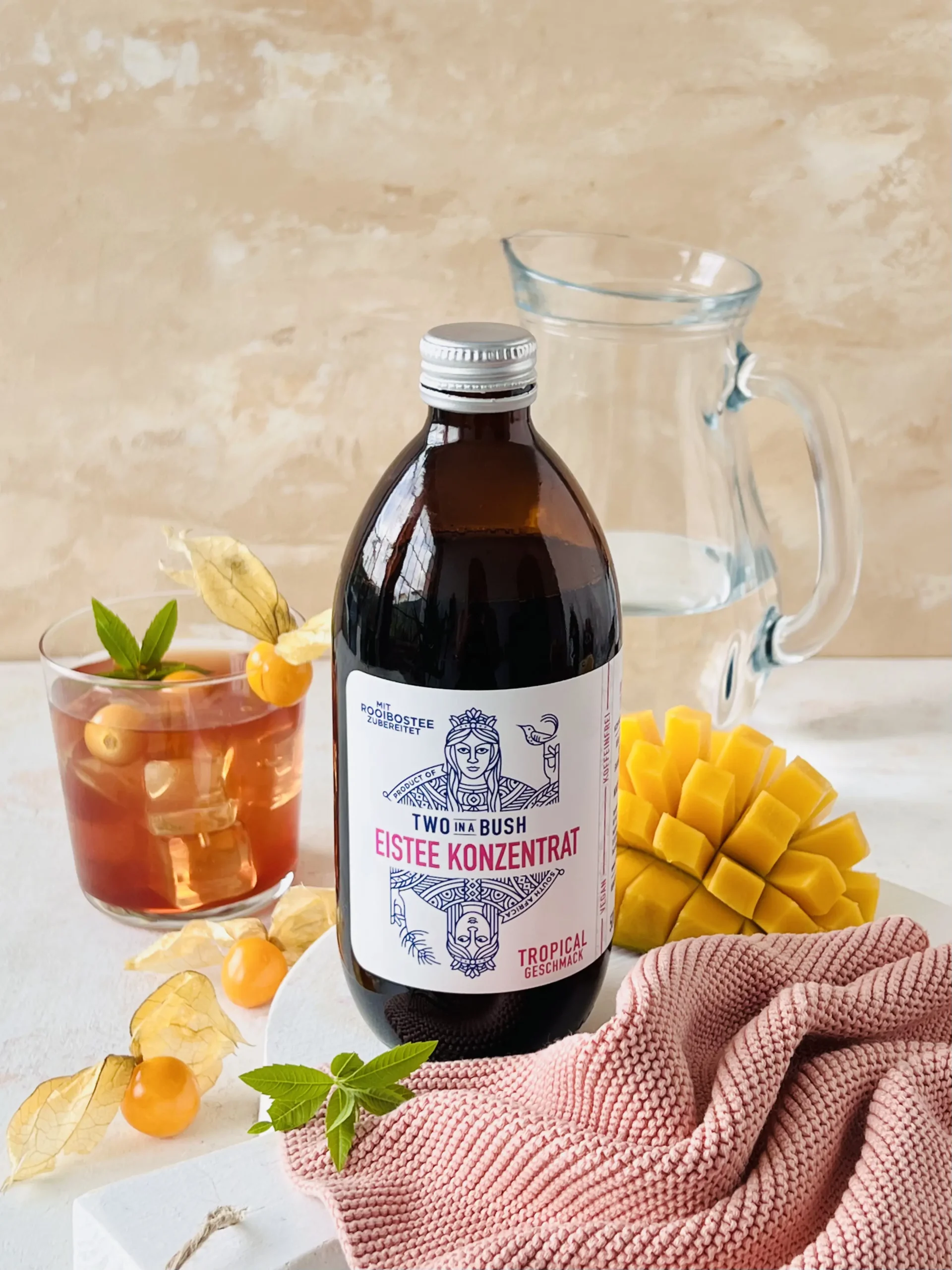 Begleitet wird sie von einer harmonischen Komposition weiterer tropischer Fruchtnoten, die dem Eistee eine sanfte Süße und eine runde, ausgewogene Fruchtigkeit verleihen. Der Rooibos bildet dabei die weiche, harmonische Basis – mild, rund und koffeinfrei – und sorgt dafür, dass die exotischen Aromen angenehm ausbalanciert wirken.